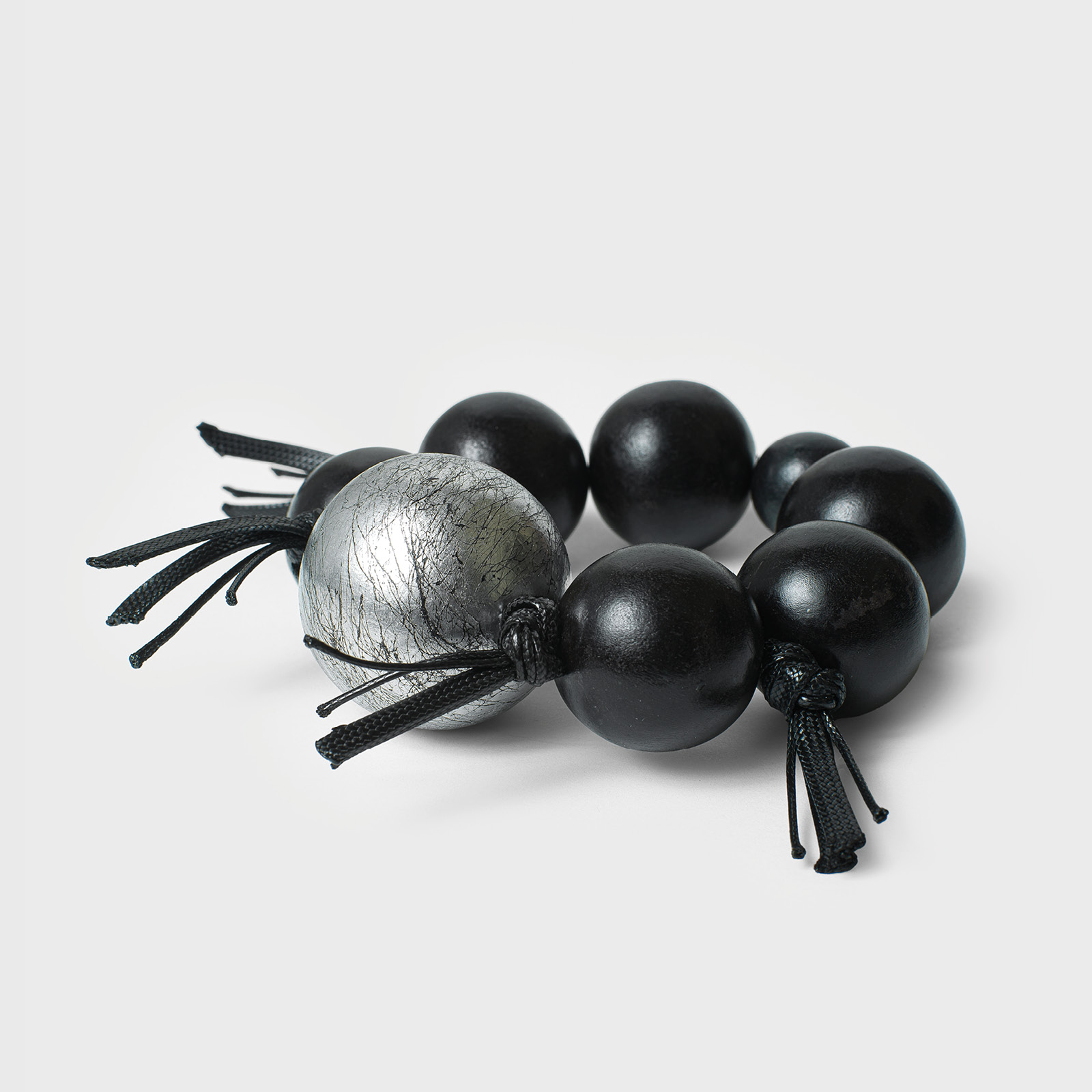 The silver bead is the “queen” among an “army” of black ones and at the same time it is also this element that differentiates this “little black bracelet” from all the rest that a woman can own.