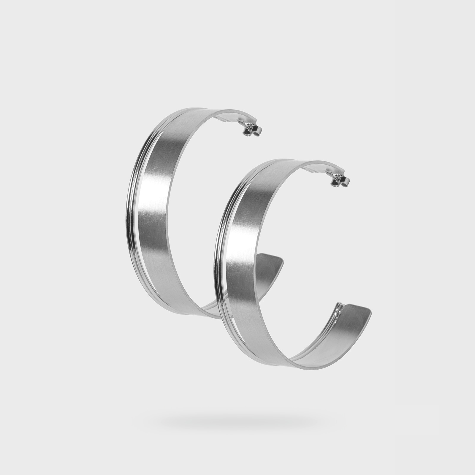 Two thin rods coexist with a wider metallic surface, making a refreshing change to the classic hoops’ look. A piece of simple aesthetic, yet with great stylistic dynamics. A timeless pair of earrings that adds an interesting twist to any look.