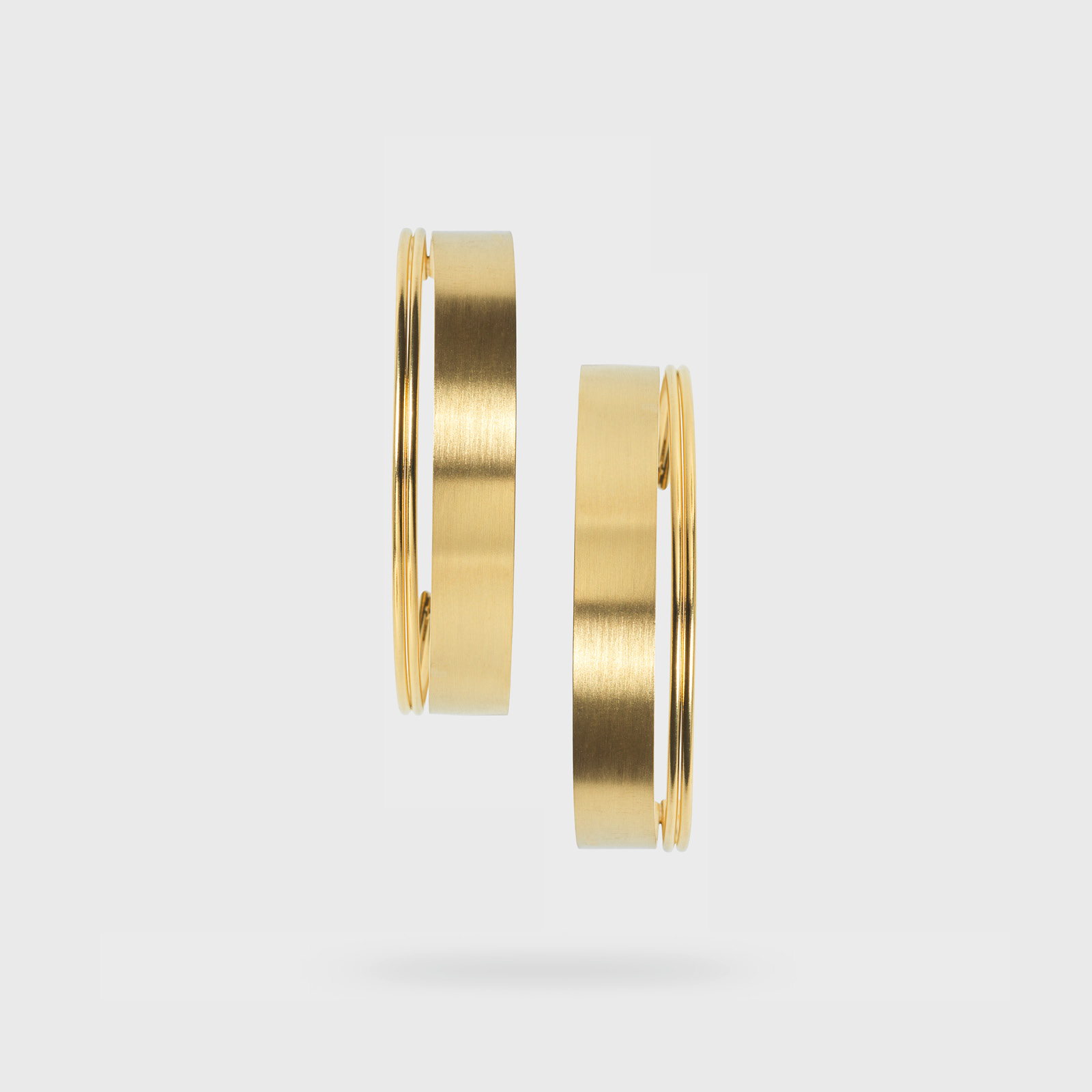 Two thin rods coexist with a wider metallic surface, making a refreshing change to the classic hoops’ look. A piece of simple aesthetic, yet with great stylistic dynamics. A timeless pair of earrings that adds an interesting twist to any look.