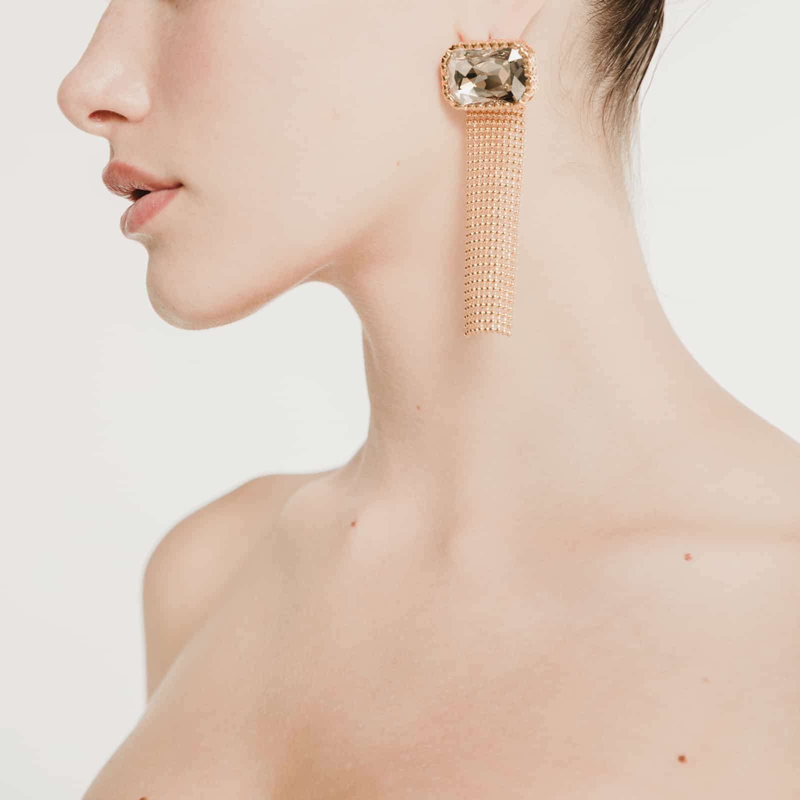 The flow of the metal combined with the shine and charm of the crystals create a pair of earrings that will not only stay in our boudoir for a long time but will also be happily passed on to the next generations without losing a single bit of its freshness and style.