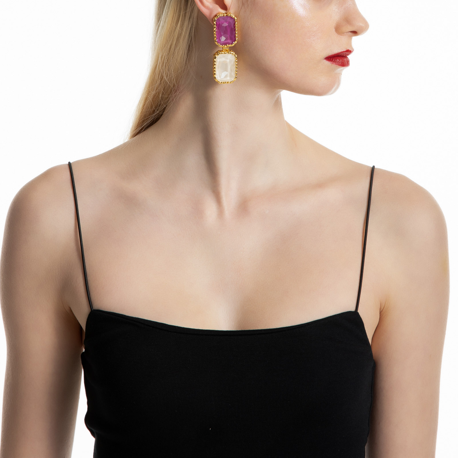 The color combo of this pair of earrings perfectly reflects the many shifts in our mood and style. It’s also what makes them the driving force behind every powerful look of ours—one that never loses its femininity or its ability to captivate.