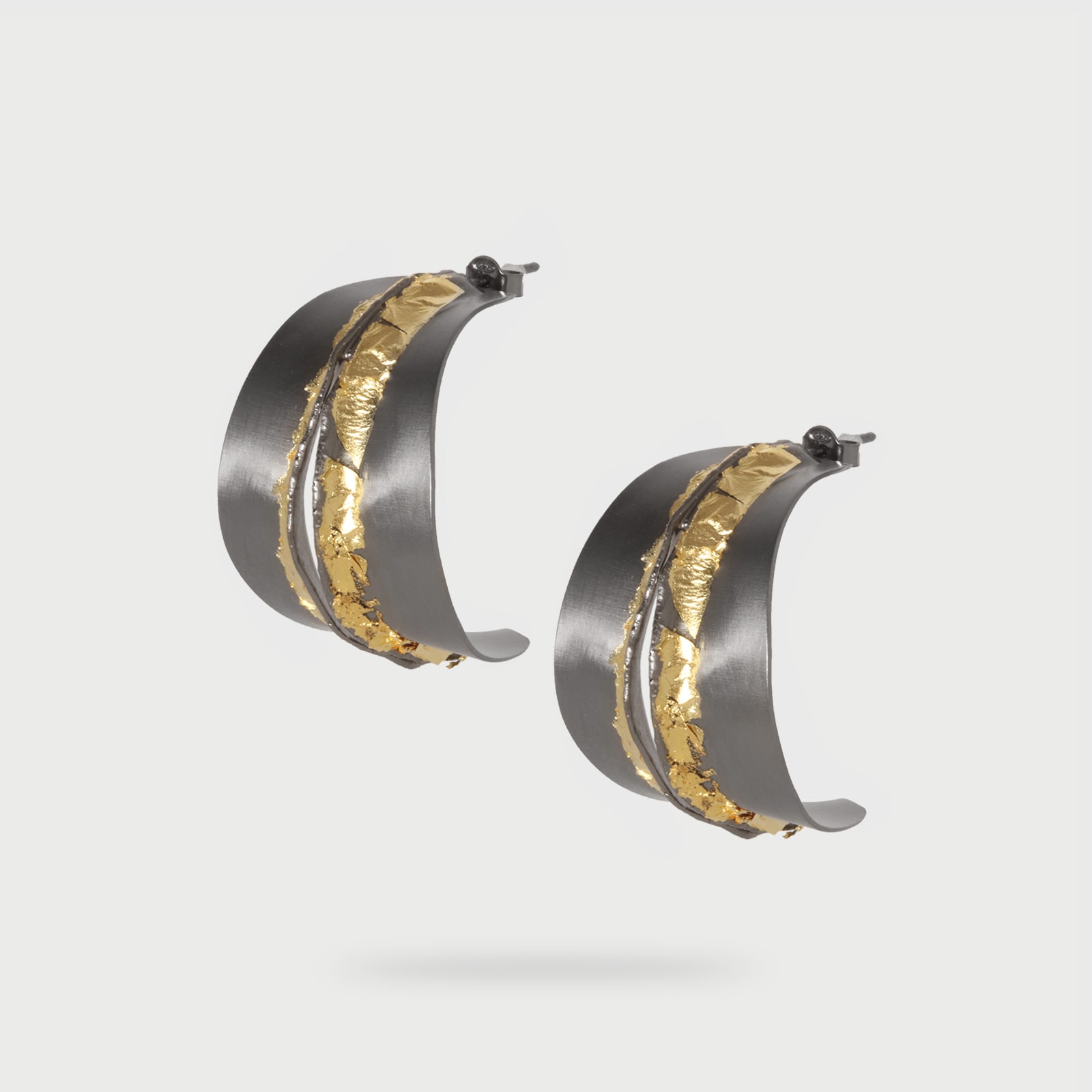 In this ingenious design brass looks like shredded paper. An imposing pair of earrings with avant garde connotations and strong personality. Touches of gold underline the design inspiration, while curves facilitate the reflections of the light in a piece of jewellery that combines urban aesthetics with glam femininity.
