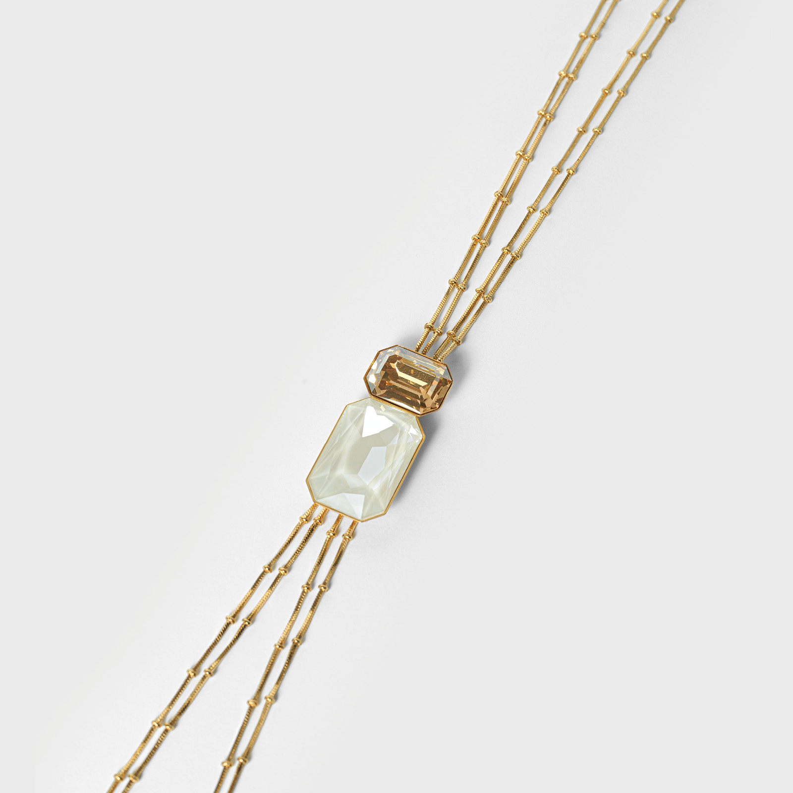 For women who adore boho style, their independence, and necklace layering, this long tie necklace creates a stunning color combo with two crystals. It “flows” down the neck like crystal-clear water, making it the most “natural” choice for any look or personality.