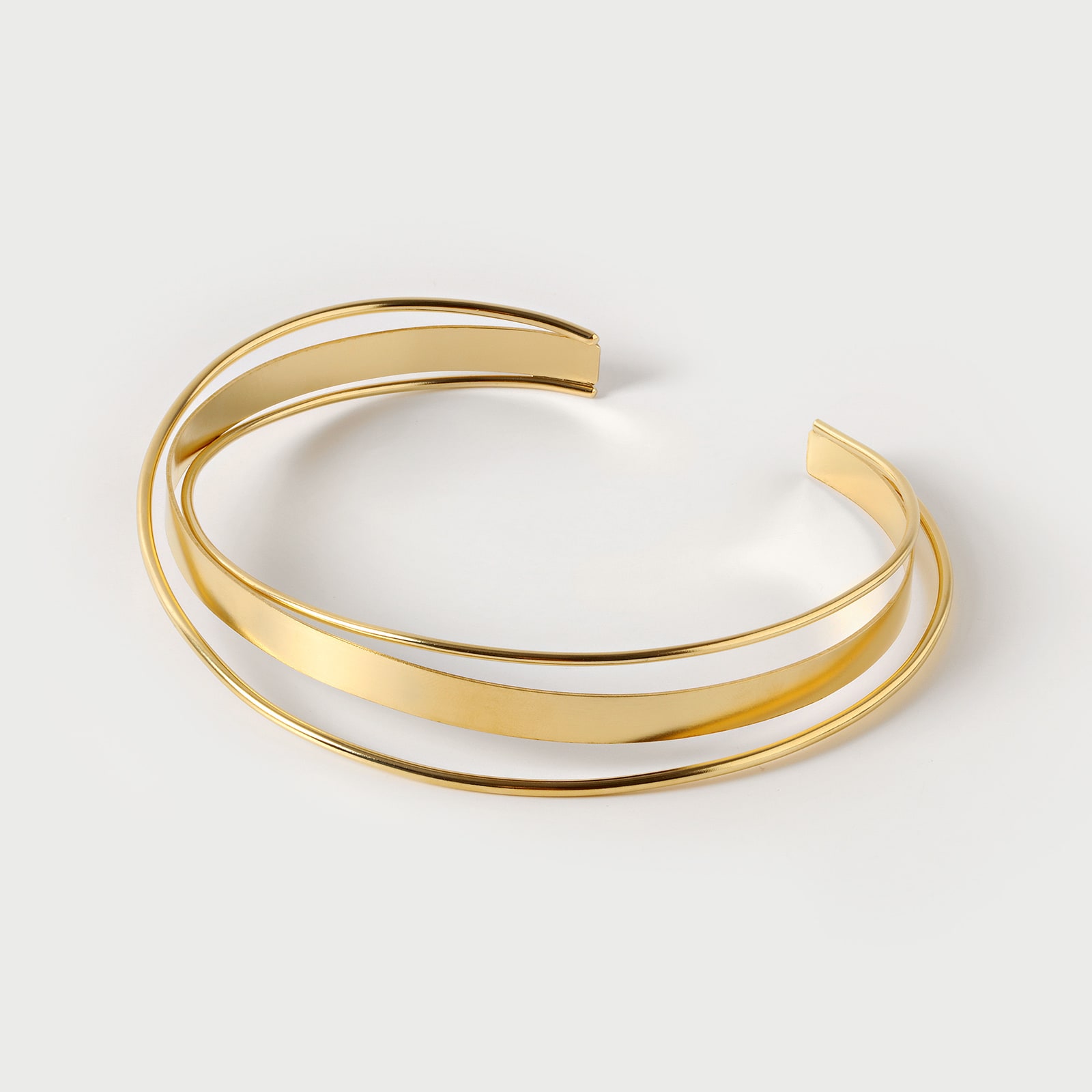 Two thin rods trace asymmetric trajectories around the necklace’s base, giving a piece of simple aesthetic, yet with great stylistic dynamics. A timeless piece of jewellery that adds an interesting twist to any look.